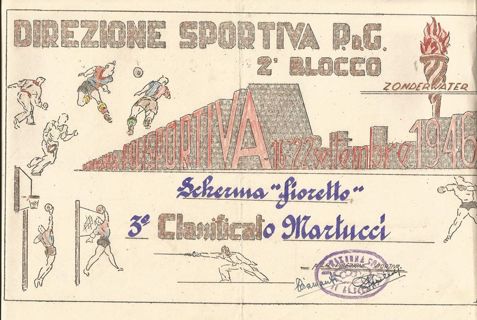 Fencing Competition Diploma. The competition was held in Zonderwater 16 September 1946 - 22 September 1946. Martucci finished in third place (foil).