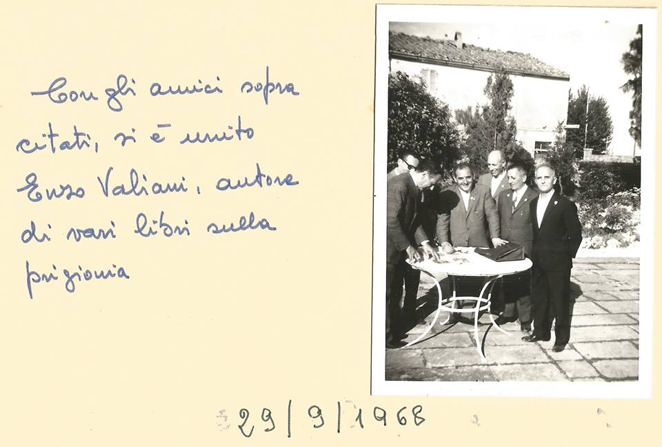 Handwritten comments by Spartaco Martucci: 'Con gli amici sopra citati, si è unito Enzo Valiani, autore di vari libri sulla prigionia. 29/09/1968'. Translation: ' With the above-mentioned friends, Enzo Valiani, author of several books on imprisonment, joined us. 29/09/1968'.