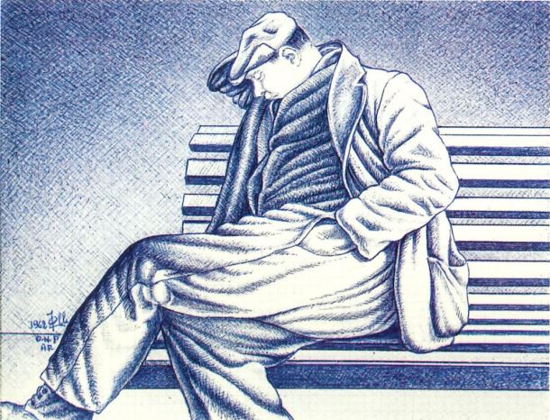 - Portrait of a man asleep on a bench