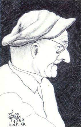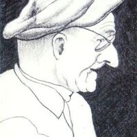- Portrait of a man wearing a cap and glasses, in profile facing right