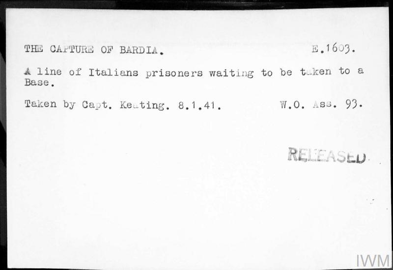 - E001603. A line of Italian prisoners waiting to be taken to the base.