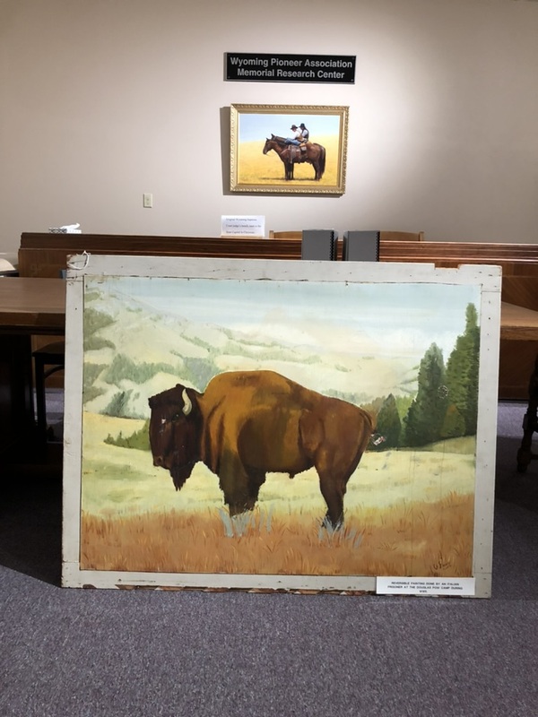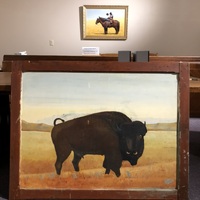 - The painting is double-sided, with a bison depicted on both sides. The signature of Finotti is visible on one side, while it has been removed on the other.