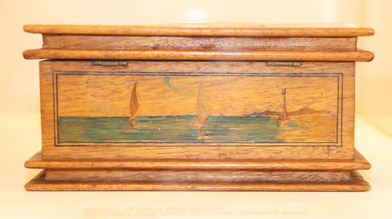 Eliseo (Peter) Pieraccini, Wooden box with carving (trinket box) (c. 1945-46). Cowra and District Historical Society and Museum Inc. Photo courtesy of Ian Woodcock