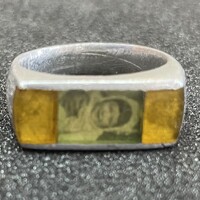 Silver aluminum ring with a portrait |