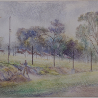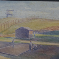 Deployed to Sicily, Almerini was captured by Allied troops at Capo Feto on July 23, 1943. He was transferred to the United States, where he arrived on September 27, 1943, after passing through Tunisia and Algeria. During his imprisonment in American prisoner-of-war camps, he had the opportunity to resume painting thanks to the commander of Camp Weingarten and his wife, both enthusiasts of flowers and Italian art. Provided with pastels and paints, Almerini returned to artistic activity, leaving behind a valuable visual record of daily life in the prison camps and of his frequent transfers across the United States, as documented in his paintings.