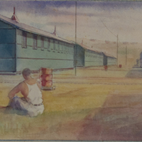 Deployed to Sicily, Almerini was captured by Allied troops at Capo Feto on July 23, 1943. He was transferred to the United States, where he arrived on September 27, 1943, after passing through Tunisia and Algeria. During his imprisonment in American prisoner-of-war camps, he had the opportunity to resume painting thanks to the commander of Camp Weingarten and his wife, both enthusiasts of flowers and Italian art. Provided with pastels and paints, Almerini returned to artistic activity, leaving behind a valuable visual record of daily life in the prison camps and of his frequent transfers across the United States, as documented in his paintings.