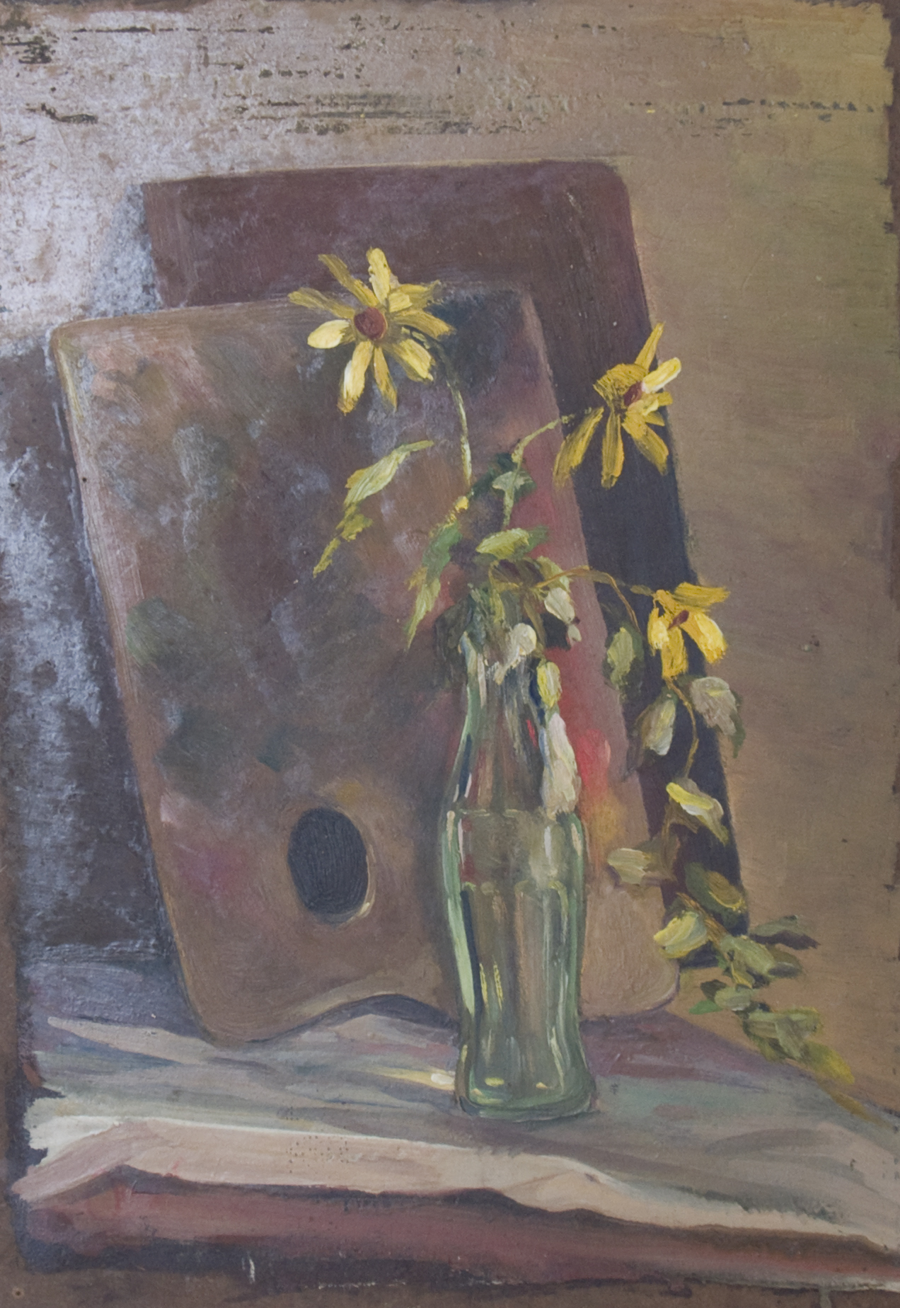 Margherite gialle in bottiglia con tavaolozza, n.64